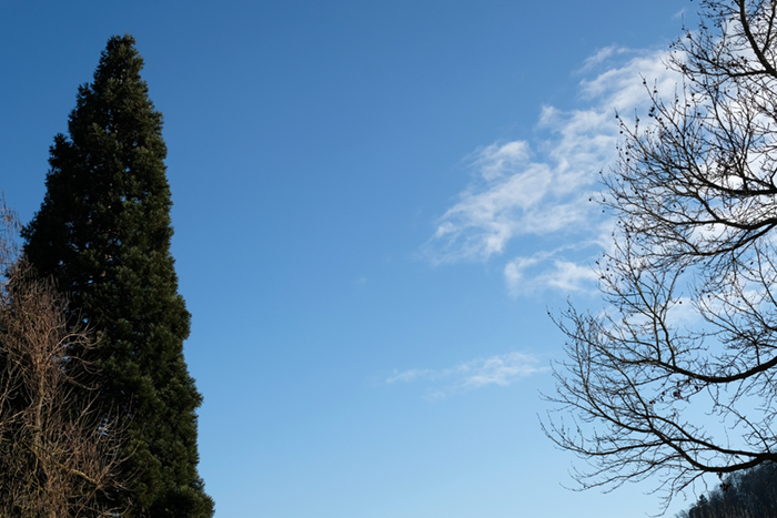 近所での撮影の合間に撮影。雲が少ないと空が広く感じられます。濃い青空が気持ち良いです。