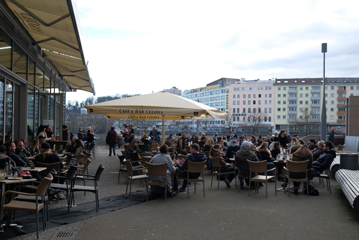 今日はアイスを食べている人を何度も目にしました。オープンカフェも一杯です。