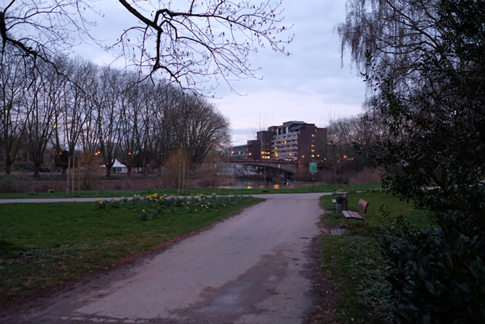 29日の写真です。お世話になった滞在先からトラムに乗ってベンラート城に移動します。午後の撮影はベンラート城の庭園で行いました。街中からは少し離れているようですが、大きな公園は市民憩いの場所のようでした。