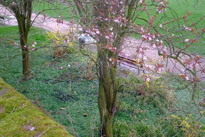 窓から下を見るとモクレンが咲いているのが見えます。ここ数日の暖かさで一気に咲きました。しかし咲いているのは陽がよく当たる上部だけで、下の方はまだ咲きそうにありません。これから少しずつ咲いていくのでしょうか。