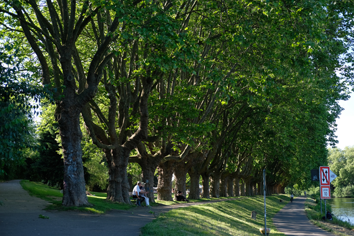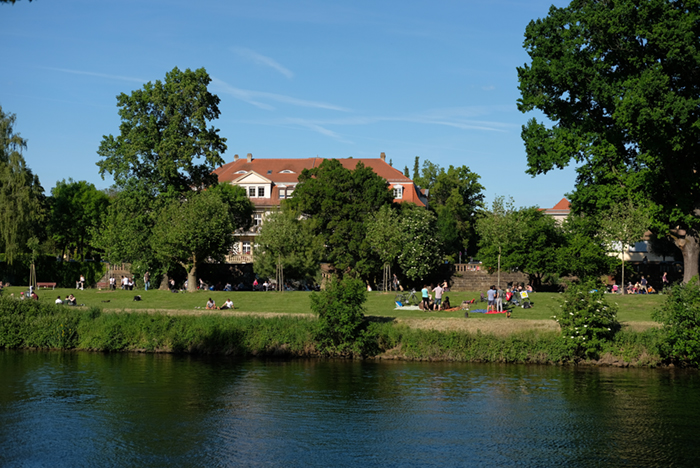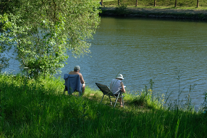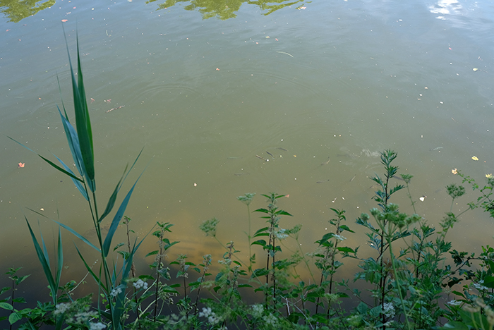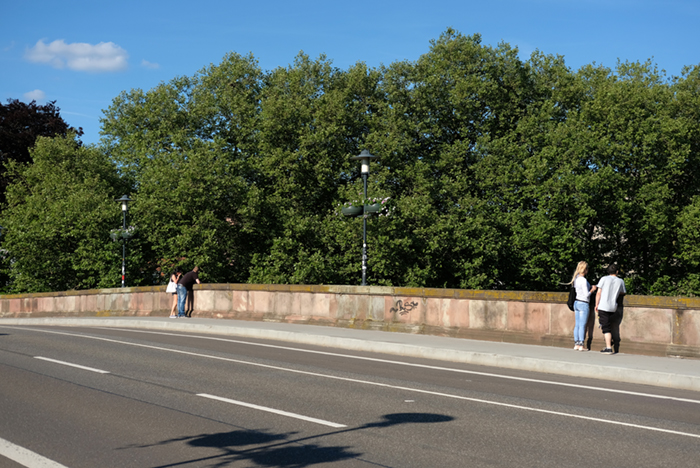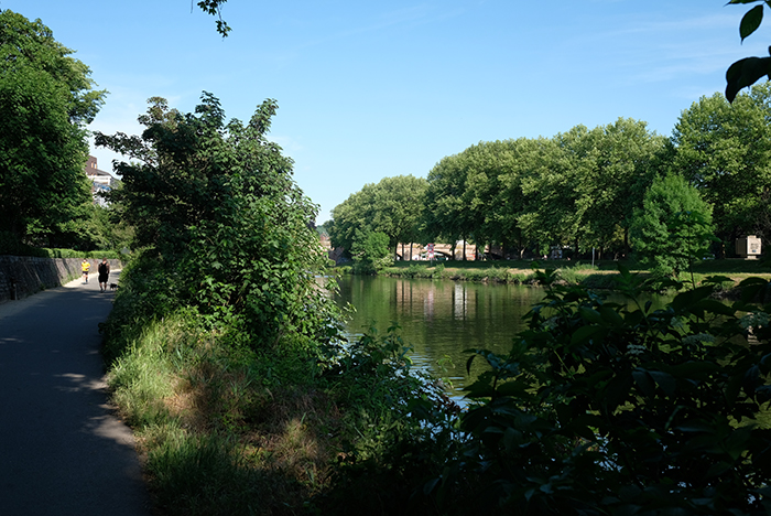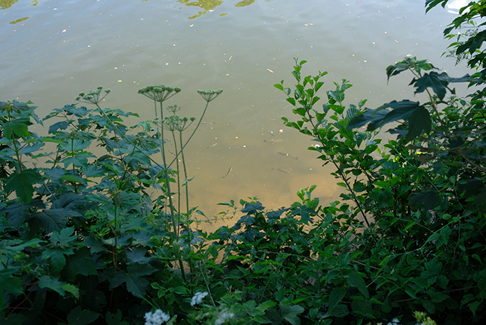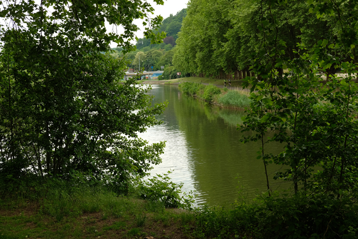 ところで、時々、ザール川で釣りをしている人を見かけますが、魚がいるのかどうかは分かりません。しかしよく見ると大きくはないですが魚がいるのが見えます。