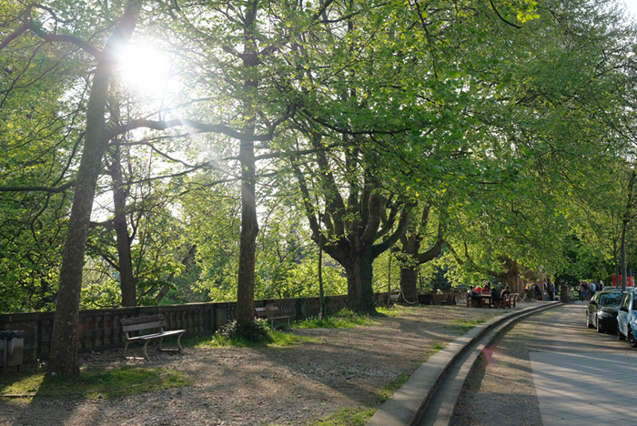 この道を歩くとき、この曲線が美しいといつも思います。今となっては風景に溶け込んでおり、あまり意識しないことかもしれませんが、これが作られた当時、おそらく19世紀後半、20世紀初頭では、車が走っていないので、道路というより今よりも人に近い場所だった気がします。また何故これが曲線を描いているのか、直ぐ側を流れるザール川の地形に影響していると思いますが、これを設計した人や、当時ここを歩いていた人のことを想像すると、この場所が何か人の想いが詰まった場所のように感じられます。