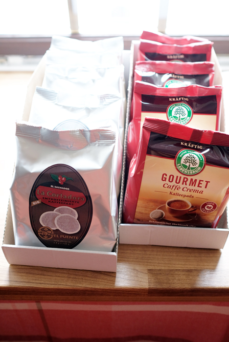 コーヒー、紅茶、アルコール、何でも好きですが特に好きなのはコーヒーです。以前より、パッドタイプのコーヒーメーカーを使っています。もし今選ぶなら美味しいコーヒーを入れられるネスプレッソを選ぶ可能性もありますが、数年前まではカプセルが専門店(最も近い場所がフランクフルト)かネットでしか購入できませんでした。今は特許の問題でその他のメーカーも参入しておりスーパーなどでも購入できます。それでもカフェパッドを選んでいるのは、参入しているメーカーが多い分、種類が最も多く、またゴミも簡単に出せるので、カフェパッドを使用しています。先日、ネットで評価の良いコーヒーパッドが売られていたので試しに購入してみました。オーガニックで濃いめのコーヒーとノンカフェインの2種類です。どのような味か楽しみです。