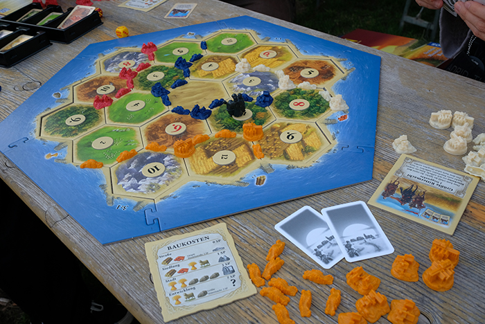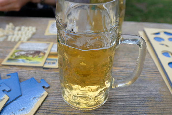 もう一ゲームやろうとしたときには既に日が暮れて、辺りは真っ暗になったので、携帯電話の明かりをつけてやりました。それほどに面白いゲームです。ルールが複雑で多いところなど、非常にドイツらしい気もしますが、それゆえにドイツ人がはまるのも分かります。それにしても大空の元、ビールを飲みながら友人たちと遊ぶボードゲームは楽しいものがありました。