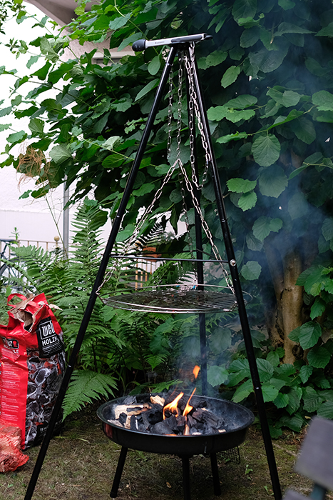 ところでザールラントにはシュヴェンカーという肉料理があります。しかし元々は次の写真の器具を指していました。それがこの器具を使う人がシュヴェンカーと呼ばれるようになり、今では肉料理がシュヴェンカーとなっています。友人所有のシュヴェンカーでグリルをしました。