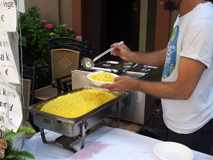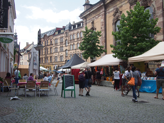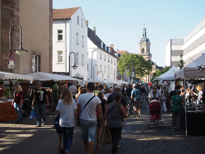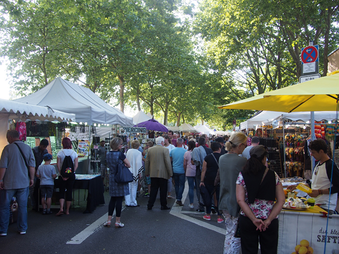 正午頃にアルトシュタットフェストを訪れてみました。昨年秋に引っ越しするまで6年間住んでいた家は旧市街地の中心だったので、家の周りでフェストがありましたが、少し離れたところに引っ越しした今は、フェストを訪れるという感覚になっています。