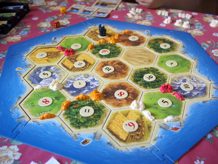 先日、友人たちと遊んだ友人所有のボードゲーム「カタンの開拓者たち」を再度やろうということになりました。前回はビアガーデンで午後7時から始めましたが、今日は天気予報では雨だったので、我が家ですることに。時間も午後5時から始めることにしました。