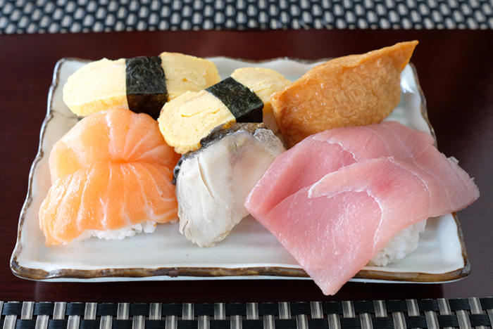 午前中に仕事が終わり、そのまま外食しました。時々行くレストランです。「ろばた焼」や「たこ焼」の文字が見えますが、そういったものはありません。ここは寿司レストランです。