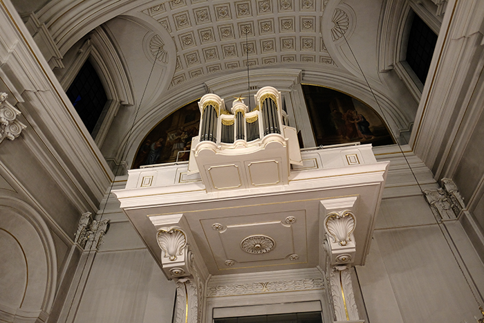 下から見上げました。オルガンのあるあの位置で歌っていました。