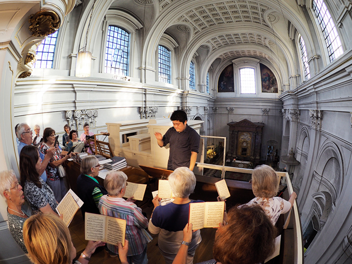 ミサの間は合唱団の後ろにいて指揮者の写真を撮っていました。ミサのあと、合唱団の集合写真を撮らせていただきました。
