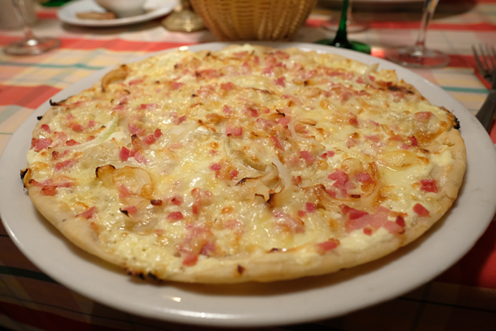 フラムクーヘンというアルザス地方のピザのようなものを注文しました。