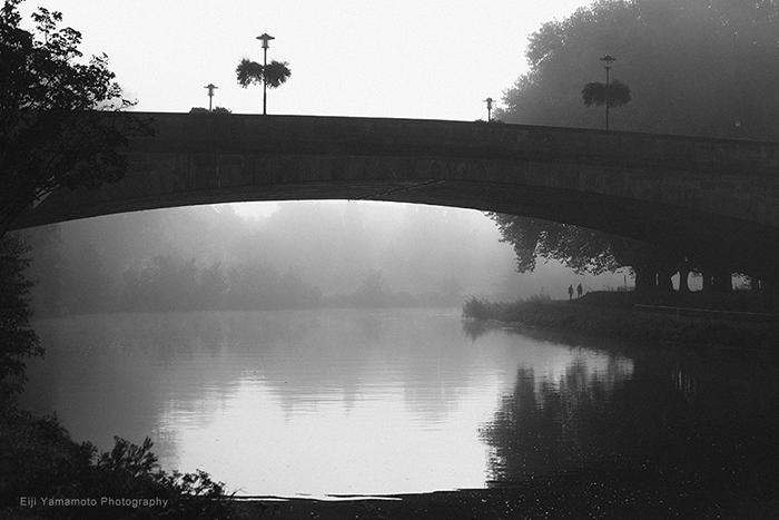 ザールブリュッケンの街角 霧が出た朝 by ey 2017年10月14日 朝起きて窓の外を見ると霧が出ています。撮影前の準備をして、少し外に出てみました。彩度の低い世界をモノクロで撮りました。普段とは少し違った印象になります。