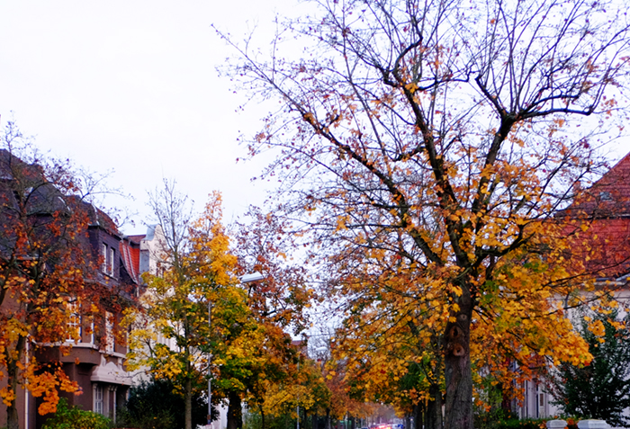 気が付けばもうすぐ夏時間も終わり、来週からは冬時間です。日が少しだけ長い今の季節を楽しめるのは今だけ、それを意識しての撮影でした。その帰りに近所で一枚。木々の上の方は既に葉が落ちて冬のようですが、下の方にはまだ黄葉が見られます。秋と冬、二つの季節が混じっているように見えます。風で枝が揺れています。