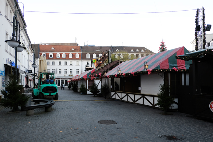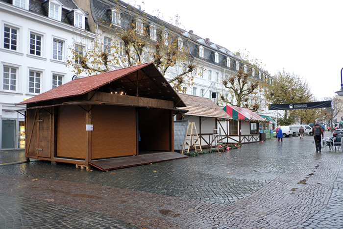 クリスマスマルクトの一部の屋台では既に準備が始められています。