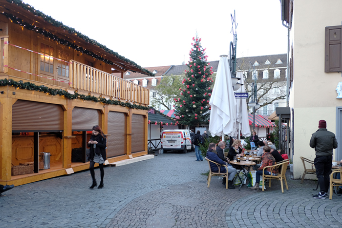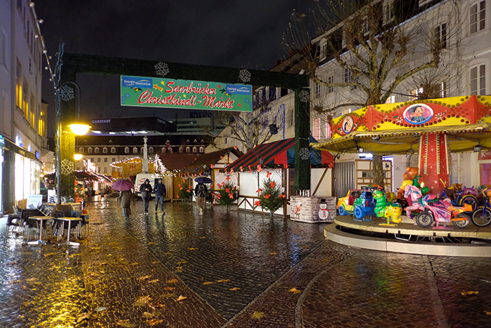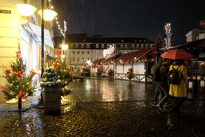 今日からザールブリュッケンのクリスマスマルクトが始まりました。今日から12月23日までです(一部は12月30日まで)。先日知り合った滋賀の写真家の方と一緒にクリスマスマルクトに行くことに。ですが、風があり、冷たい雨が降っていたので、まずカフェに行きました。