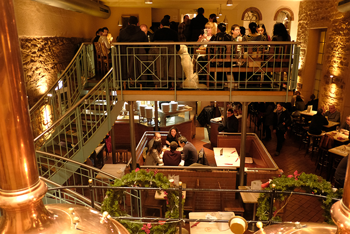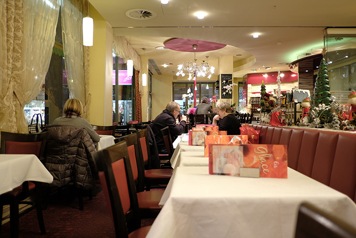 店内は月曜の夜にもかかわらず混んでいます。同じようにクリスマスマルクトに来た人が風雨をさけるために訪れているのかもしれません。