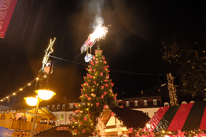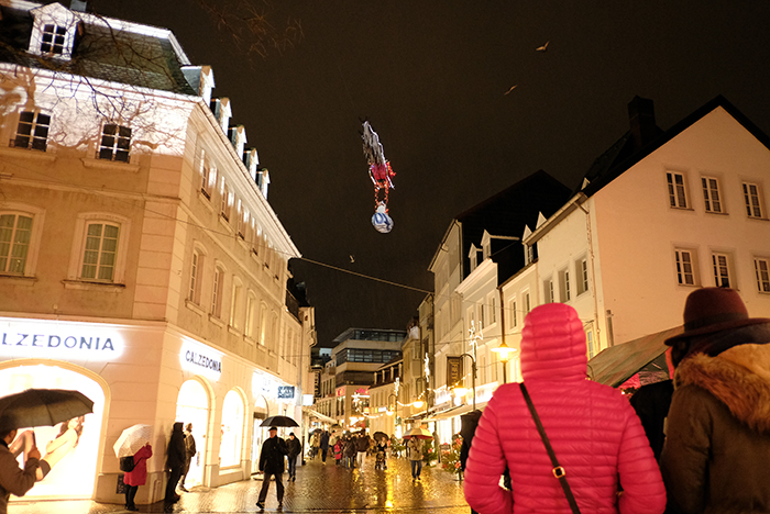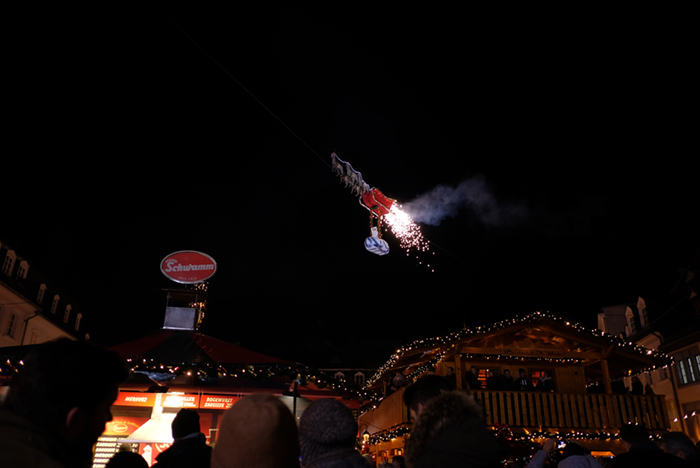 夕方は滋賀出身の写真家の方と一緒にクリスマスマルクトを回りました。前回は雨が降っており寒くてゆっくり回れませんでしたが、今日はゆっくりと見て回れました。「空飛ぶサンタクロース」です。素朴なイベントですが、見ている人が楽しく幸せそうで、そういった人々を見ているとこちらも暖かい気持ちになります。