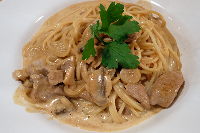 そこでパスタを注文。おそらく白ワインが使われているのか、ワインの香りがして美味しいパスタです。