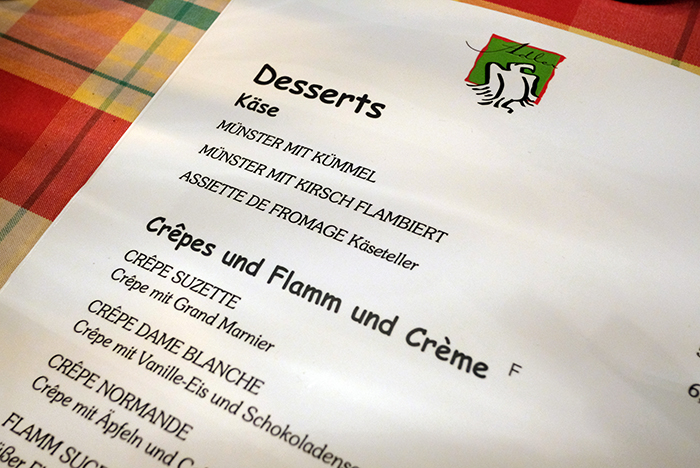 その後、デザートを注文することに。デザート欄の一番最初にチーズがあるのが、ドイツやフランスらしい気がします。