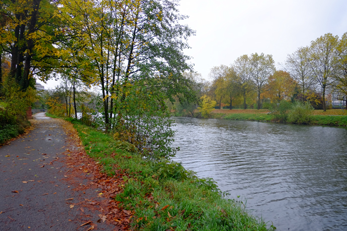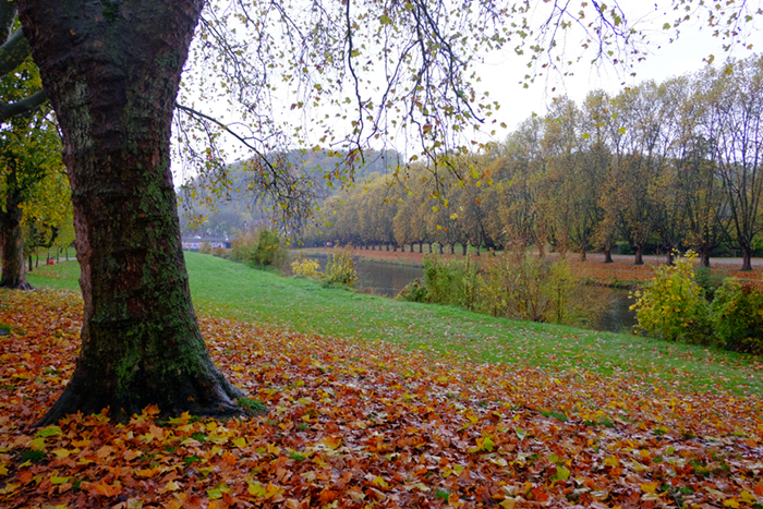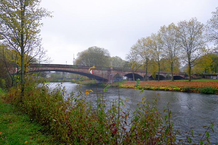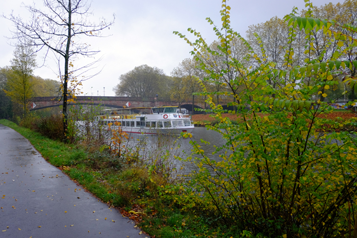 川の方から声が聞こえてきたと思うとザール川の遊覧船でした。思った以上に人が乗っているようでした。