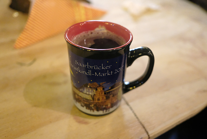 グリューヴァインを飲みました。毎年描かれているデザインが変わって、ザールブリュッケンの観光的な建物が描かれますが、今年は全て描かれています。