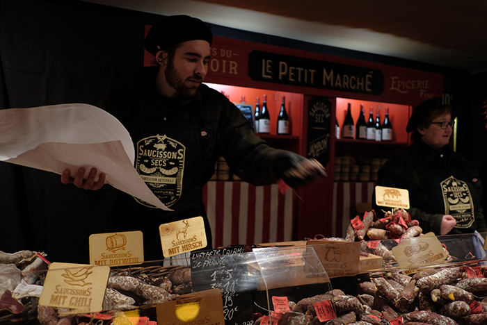 アルト・ザールブリュッケンのクリスマスマルクト2日目も楽しむことが出来ました。そういえば今日歩いていると、クリスマスマルクトのお店の方から、首から提げているのはフィルムカメラかと聞かれました。いつものように富士フイルムX-Pro2に18mm F2です。レンジファインダーのようなものなので、知らない人にはフィルムカメラのように見えるかもしれません。何処のカメラか、デジタルか、と続けて質問され、何度も格好いいと口にされました。カメラが格好いいといわれるのは、やはり嬉しいことです。