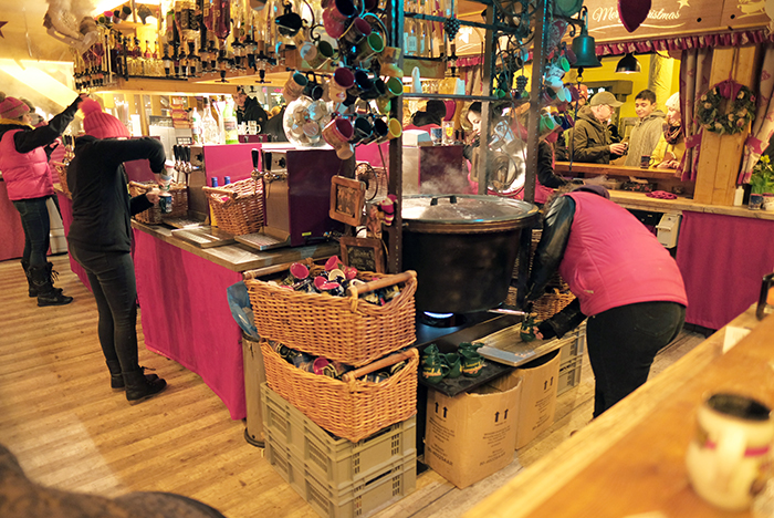 グリューヴァインの屋台周辺はいつも人が一杯です。