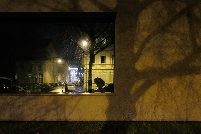 窓に映る風景、傘を持っているのは私ですが、その窓に他の人が映っていたので振り返りました。