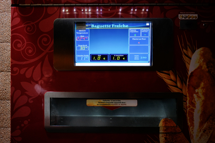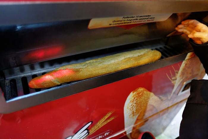 友人とフランスに行ったときに見つけました。バゲットの自動販売機です。ニュースで見たことはありますが、初めて見ました。ドイツで屋外の自動販売機といえば基本的にタバコくらいしかなく、自動販売機そのものが珍しくも感じられます。