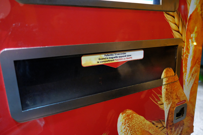 家に帰ってから食べましたが、美味しいバゲットです。近所にあれば毎日でも利用するかもしれません。この自動販売機の前にいたときに別の人が車で買いに来ましたが、フランスでは利用する人が多いのかもしれません。フランス文化の一つを体験した気がしました。