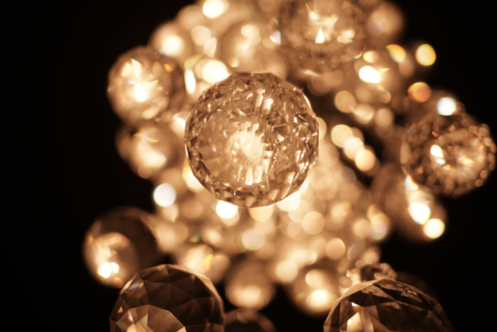 絞り開放F2.0と絞りF16です。それだけで雰囲気が大きく変わるような気もします。どちらが良いかは好みや用途にもよると思いますが、言い換えればそれだけ表現の幅もあるということ。まるで宇宙の中に光る星のように見える照明ですが、そんなことを思いました。