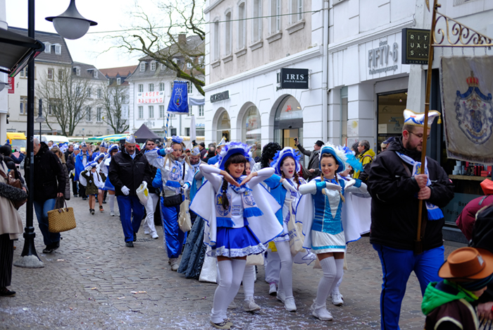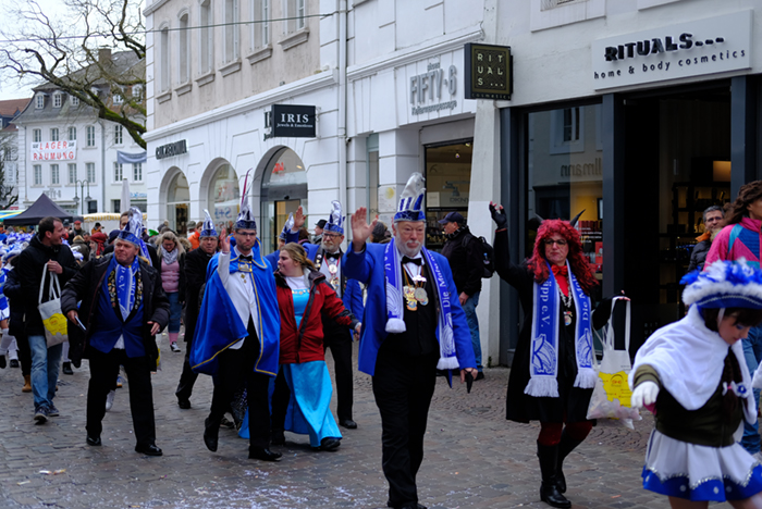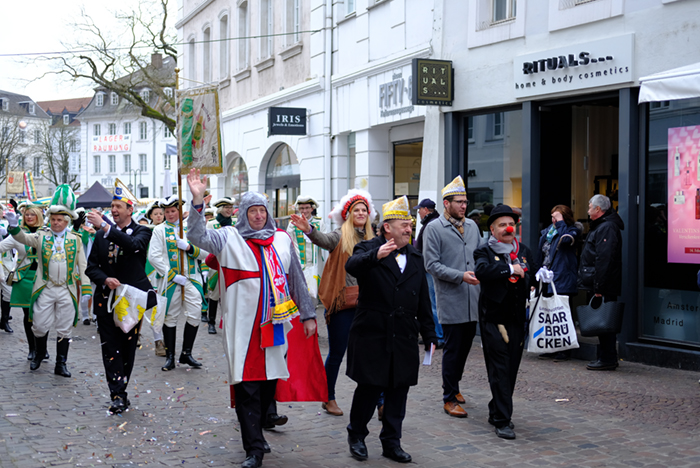 午前11時11分に市庁舎に到着するように午前11時にパレードが始まりました。最初は複数の警官が歩き、その後をザールブリュッケンやその周辺の団体がパレードします。