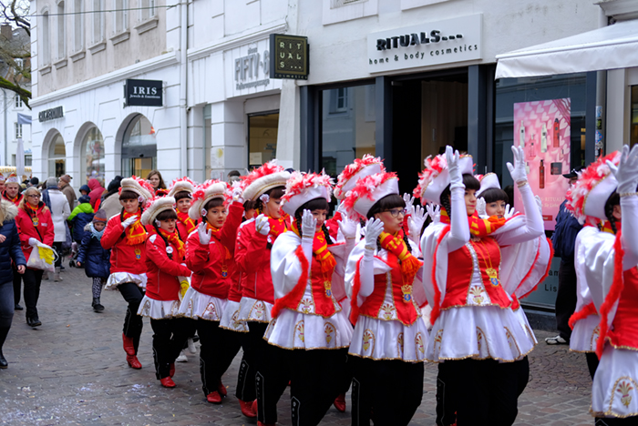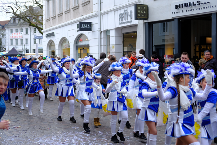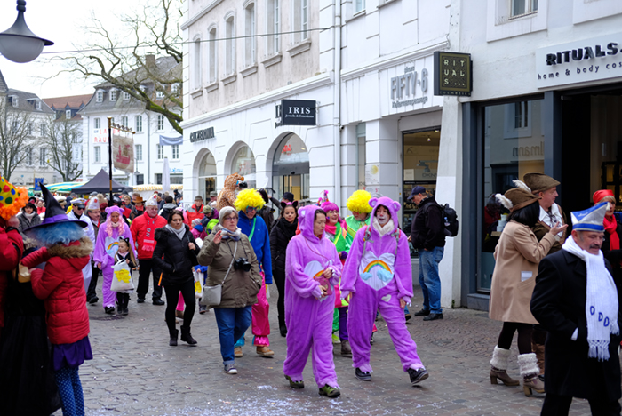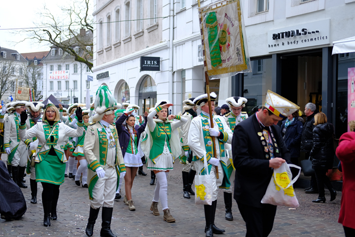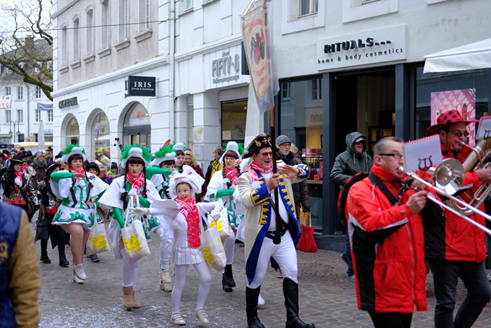 このパレードは時間的には僅かですが、ザールブリュッケンで民族衣装的なものが見られる数少ない機会だと思います。パレードではかけ声があって、パレードをする人たちが声を出していますが、それは見ている人たちを楽しい気持ちにさせるので、それもあって人を惹きつけるのかもしれません。何かそこにみんなで一緒に楽しもうという目に見えない一体感のようなものがある気がします。