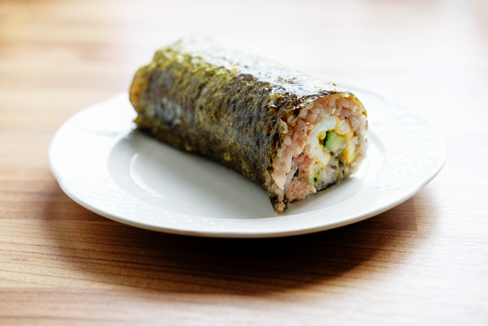 2008年から毎年、恵方巻きを作って食べています。今年はネットで作り方を見ると半分に切るとあったので、半分に切りました。十六穀米を使った恵方巻き、美味しくいただきました。