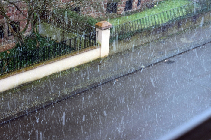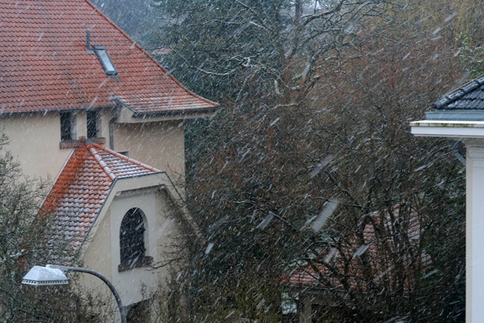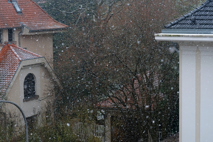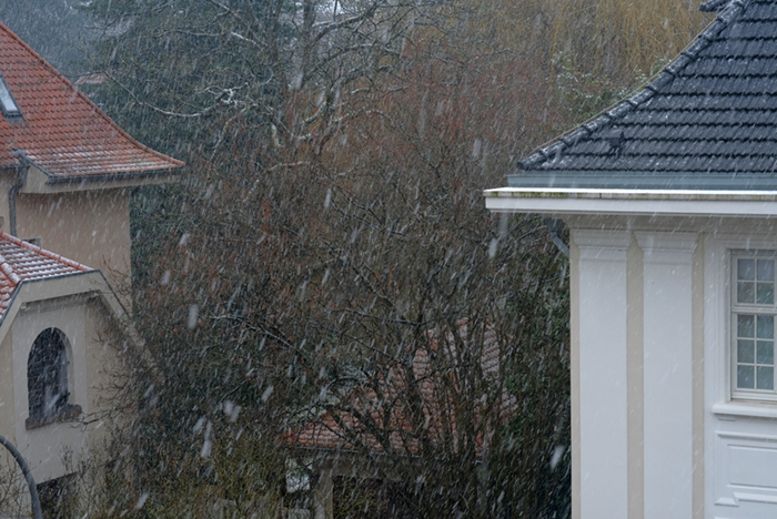 今日の気温は氷点下前後、冷たい風があって寒い一日でした。午前中には天気予報通り、雪が降りました。シャッター速度や露出、絞りを変えて色々と撮りました。風があったので、流れるようなときもあれば、風が弱く、しんしんと降るような時もありました。雪での生活は大変ですが雪の撮影は奥が深いです。この雪は午後には雨になりました。