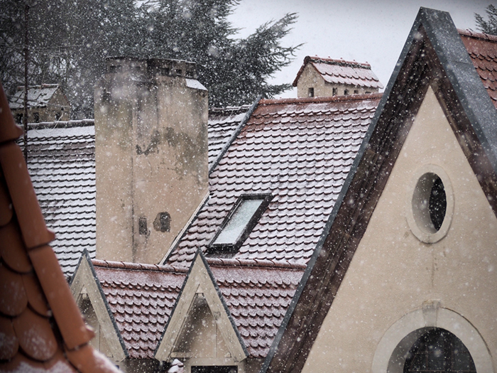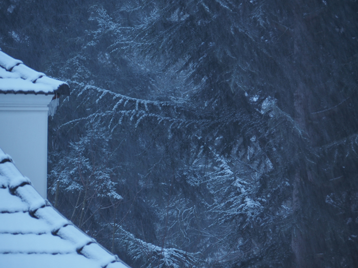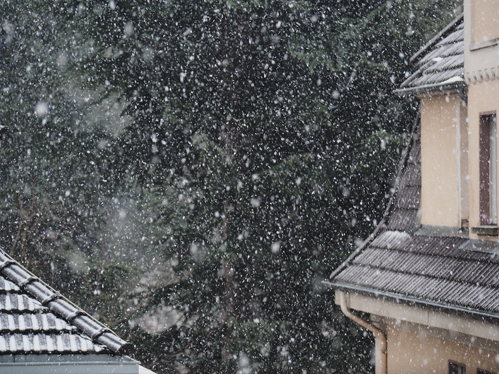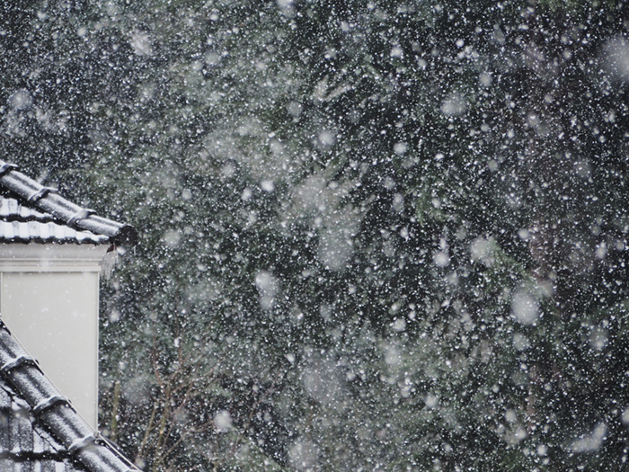 夕方になってもその雪は降り止みません。屋根も真っ白です。