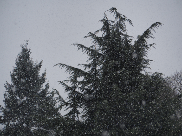午前中は天気予報通り、みぞれが降っていました。短時間のみぞれは時々ありますが、ここまで長く続くのは珍しいかもしれません。と思っていると、午後から雪になりました。
