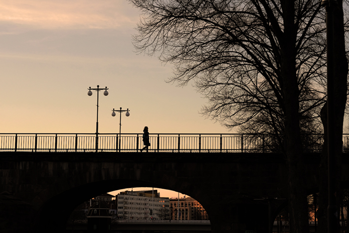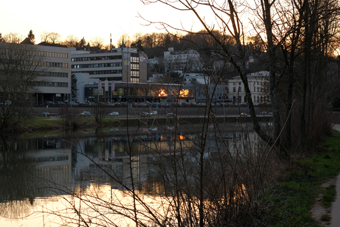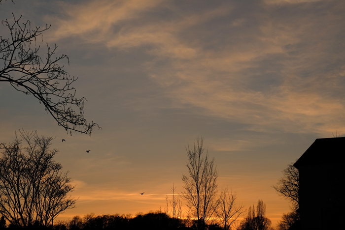 ザールブリュッケンの街角 夕方 by ey 2018年3月21日 昨日より少し遅い時間です。夕方の変化する空が好きです。そこに人や飛行機、鳥、雲など様々な偶然が重なって画になります。それを思うと、同じ夕方でも昨日と違っているだけでなく、同じ景色も2度とないかもしれません。写真はまさしく一期一会だと思います。