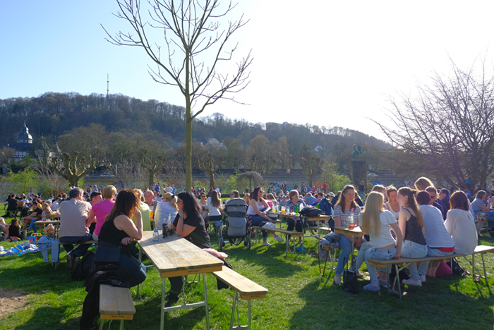 写真は整理して明日以降に載せたいと思います。その後、ザールブリュッケンに戻り、ビアガーデンに。こちらも人で一杯です。ビールのスタンドも行列が出来ていました。