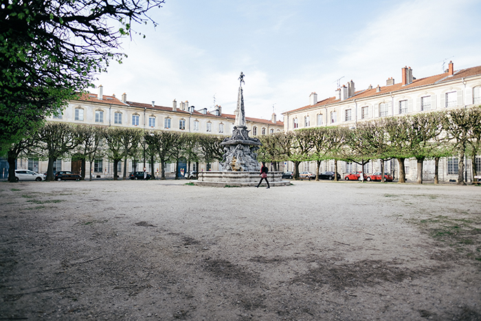 ユネスコ世界文化遺産のアリアンス広場。普通の広場で全く世界遺産らしさが感じられません。案内板も目立ったところになく、シールが貼られてあったり、ゴミがあったりと地元の人はまるで知らないのではないかと感じるほどの世界遺産です。