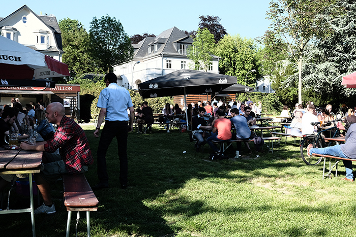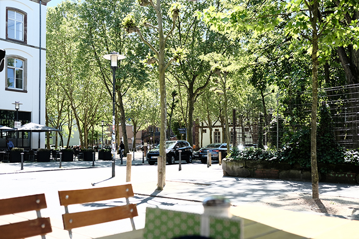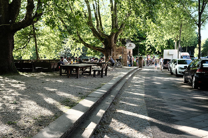 本当は影のある涼しいところで飲みたかったのですが、空いていたのは屋根のない暑い場所だけでした。飲み終わってから、以下の場所を思い出しました。こちらは木陰で涼しい場所です。時間的に席が空いていたかどうか分かりませんが、この選択肢を忘れていました。