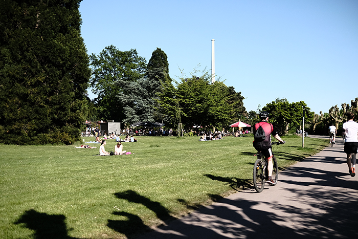 午後の仕事のあと、夕方に近くを散歩をしました。気温は25度。日差しが強く暑いです。公園では水着になっている人の姿がよく見られました。