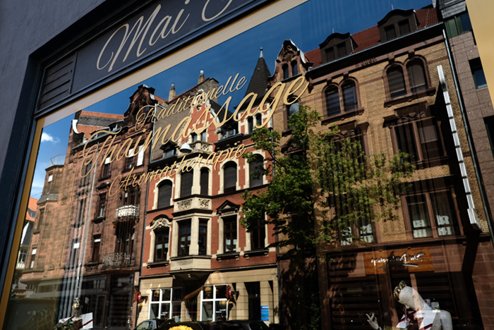 ザールブリュッケンの街角 窓 by ey 2018年6月5日 撮影帰りに撮った一枚です。空が綺麗だからか、窓が綺麗なのか、いずれにしても通りの反対側の建物が綺麗に写っています。まるでその窓の向こうにあるようにも見えます。それを利用して別世界を表現することも出来るかもしれません。