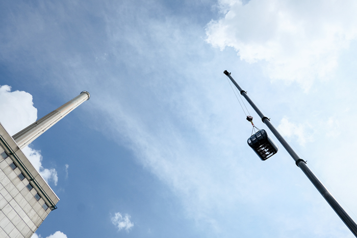 ところでこの催しで行ってみたかったのが、高さ60メートルまで上がるゴンドラです。会場で一番の行列が出来ていました。行列に並んで乗ってみました。8人乗りで往復5-6分でしょうか。最上部で一分ほど止まります。