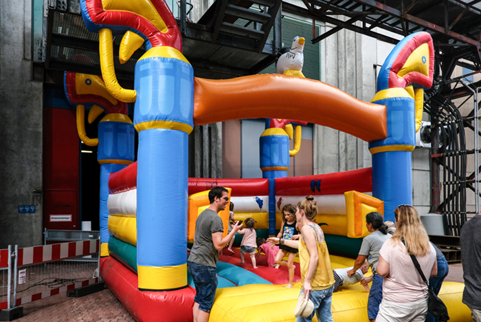 今日の日曜日、街のイベントカレンダーによると、ザールブリュッケン市内では幾つもの大きなイベントが予定されています。その中でそれほど規模は大きくないですが、行ってみたいものがありました。家から徒歩約10分の近所にあるレーマーブリュッケ発電所の一般公開です。家からは煙突がよく見えています。夕方に行ってみました。思った以上の人が参加しているようです。人との距離が近すぎて写真が撮れません。「一般公開」の文字を撮りました。