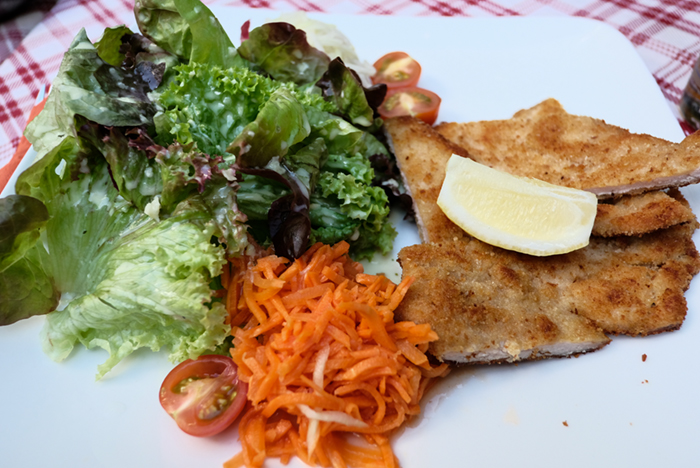 散歩をして、その後は中庭のあるドイツ料理のお店に。