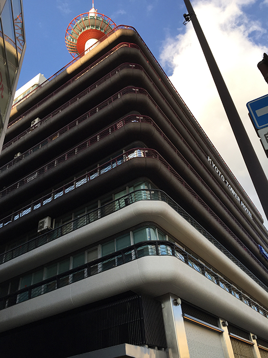 見上げると京都タワー。