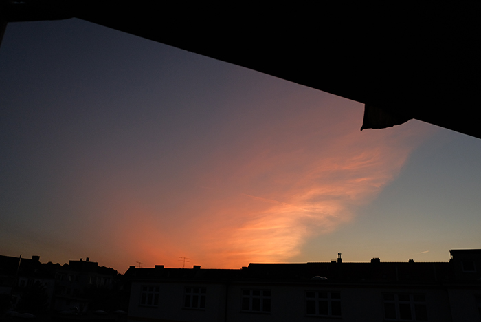 ザールブリュッケンの街角 友人と by ey 2018年8月20日 久しぶりに友人に会いました。偶然でしたが、その場で1時間以上立ち話をしていたので、結局、友人宅に行くことに。久しぶりに会ったこともあって楽しい時間でした。午後10時ごろの空。夕焼けが綺麗です。