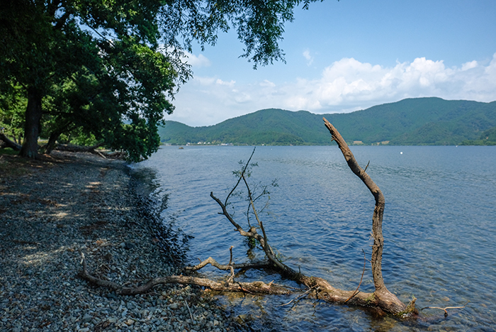 今年の夏の一時帰国時に家族で訪れた琵琶湖です。水に触れてみると、冷たくはなく少しぬるいといった感じでした。こういった場所で写真を撮るときに考えるのは、空と湖のバランスです。広い青空が綺麗だと感じたので、空を多めにして撮ったものもありますが、実際の撮り方として正解はないと思います。湖を印象的に撮りたいと感じることもあれば、目にしたままで空と湖を半分にしたり。記録的に撮るか、人にどのように見せたいか、何を見せたいかによって撮り方は変わってきます。一つの景色を前にしただけでも、自分を意識したり、他人を意識して撮影したり、様々な撮り方があります。そういった撮り方の違いも写真の奥深さの一つかもしれません。そこに撮影の楽しみがあります。