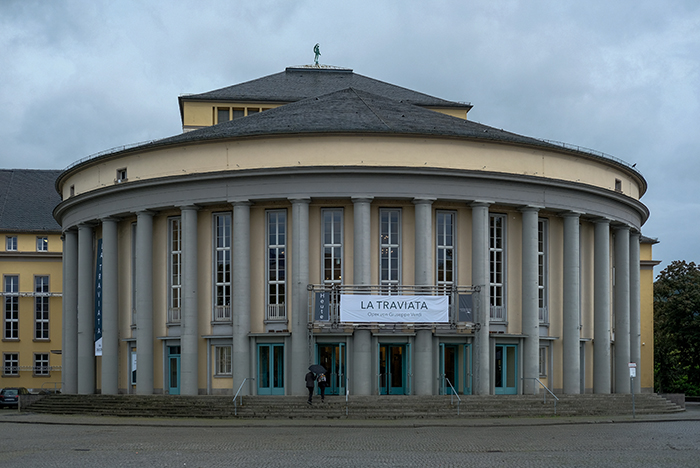 小雨が降る中、ザールラント州立劇場に行きました。ヴェルディ「ラ・トラヴィアータ(椿姫)」(1853年作曲)です。同劇場新シーズン最初の演目で、今日は2日目公演です。初日は早くから完売になっておりチケットが取れませんでした。